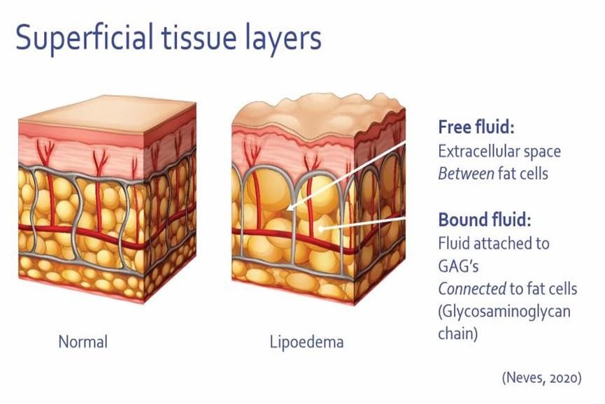 Lipedema fat is so different from regular fat. It doesn’t sit in the body the same way as regular fat does. If you do an image search of “Lipedema Fat vs Regular fat” you will see how regular/normal fat is all in a big hunk together, whereas Lipedema fat is more like blobs and globs and nodules of fat, strung together and completely tangled up in the lymphatics system, nerves and veins, capillaries etc. within the layers of muscle beneath the skin. (No wonder it’s painful and super sensitive to the slightest pressure!?!)