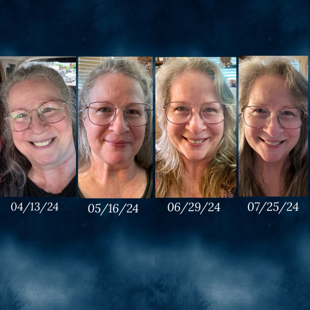 The progress was slow at first, going only weekly. We decided to speed it up and in April, I began to go twice a week. By May the progress was visible. In June even more so. I looked like a different person. By late July, although the shape was similar to June, I looked younger!